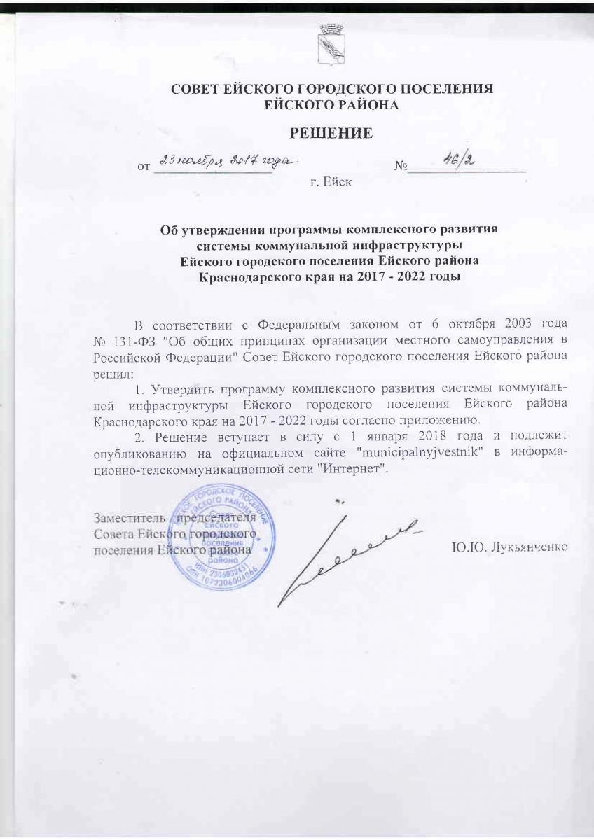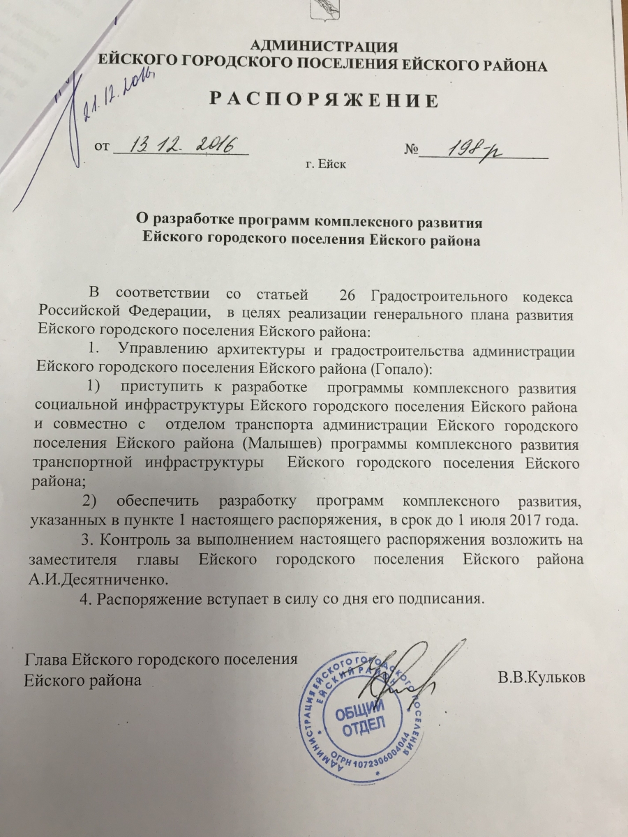 Программы комплексного развития города Ейска