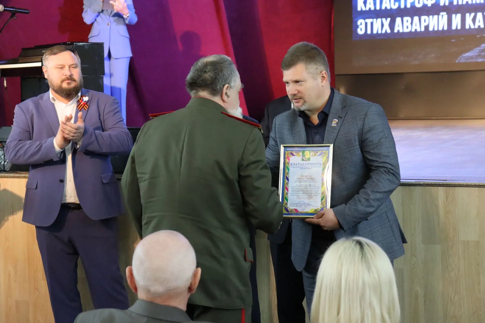 🔹 За плодотворную работу по развитию чернобыльского движения в Ейском районе, большой личный вклад в сохранение и увековечивание подвига ликвидаторов атомной катастрофы, своевременную поддержку и бескорыстную помощь семьям чернобыльцев благодарностью главы Ейского района и почетной грамотой администрации муниципалитета, благодарственным письмом постоянного комитета ЗСК награждены ликвидаторы аварии на ЧАЭС, члены местного отделения «Чернобыль».