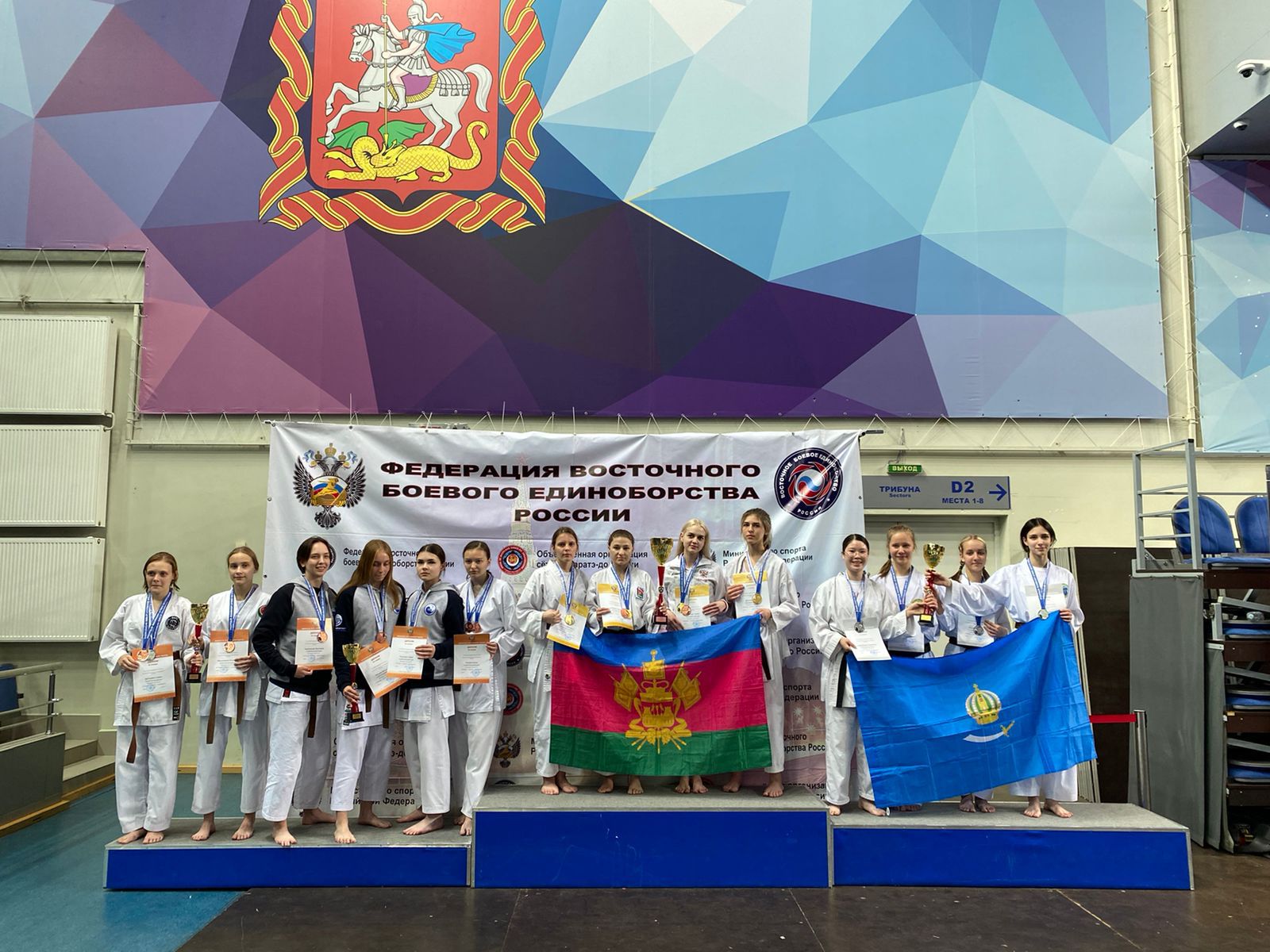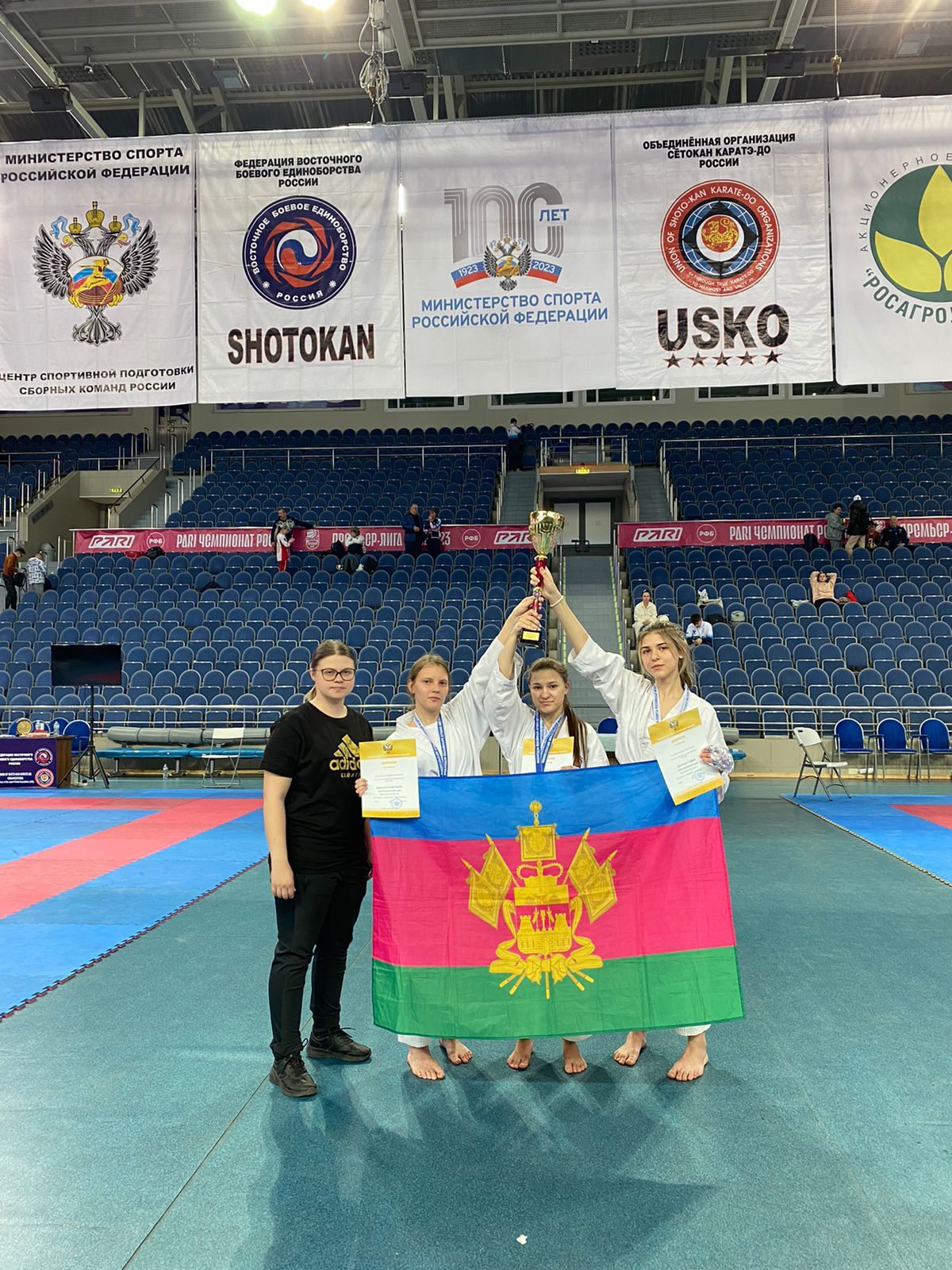 Среди юниорок на Первенстве России в командном кумите 16-20 лет в составе сборной команды Краснодарского края завоевали золото Деточка С., Бегтина А., тренирует девушек Анастасия Ребрина.