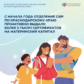 С начала года Отделение СФР по Краснодарскому краю проактивно выдало более 5 тысяч сертификатов на материнский капитал