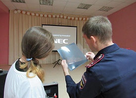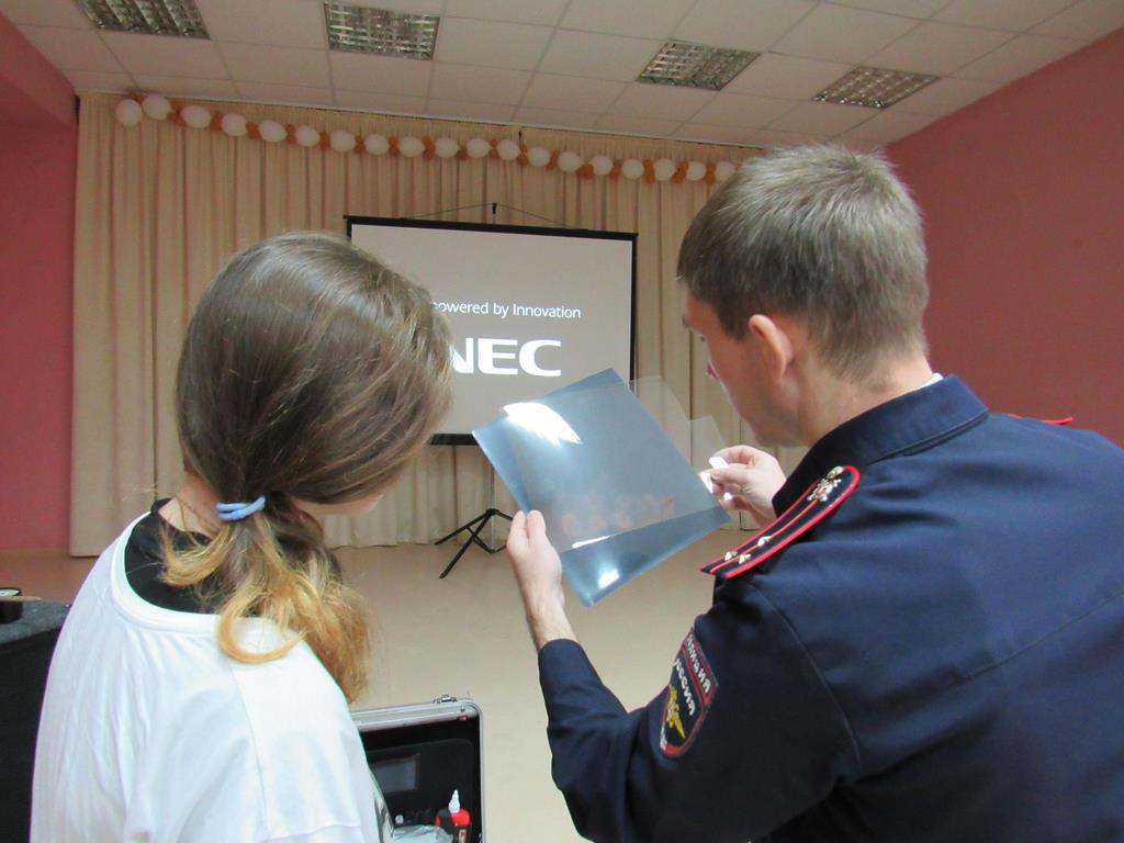 В ходе мероприятия студенты ознакомились со спецификой работы подразделений полиции. Эксперт криминалистического отдела старший лейтенант полиции Николай Спиряков продемонстрировал ребятам содержимое служебного чемодана и рассказал о видах экспертиз, которые делает экспертно-криминалистическое подразделение полиции. Также правоохранитель продемонстрировал участникам мероприятия, как выявить следы обуви и пальцев рук, предоставив возможность студентам почувствовать себя в роли полицейского и поучаствовать в процедуре изъятия следовых фрагментов.
