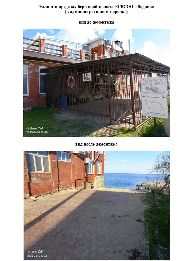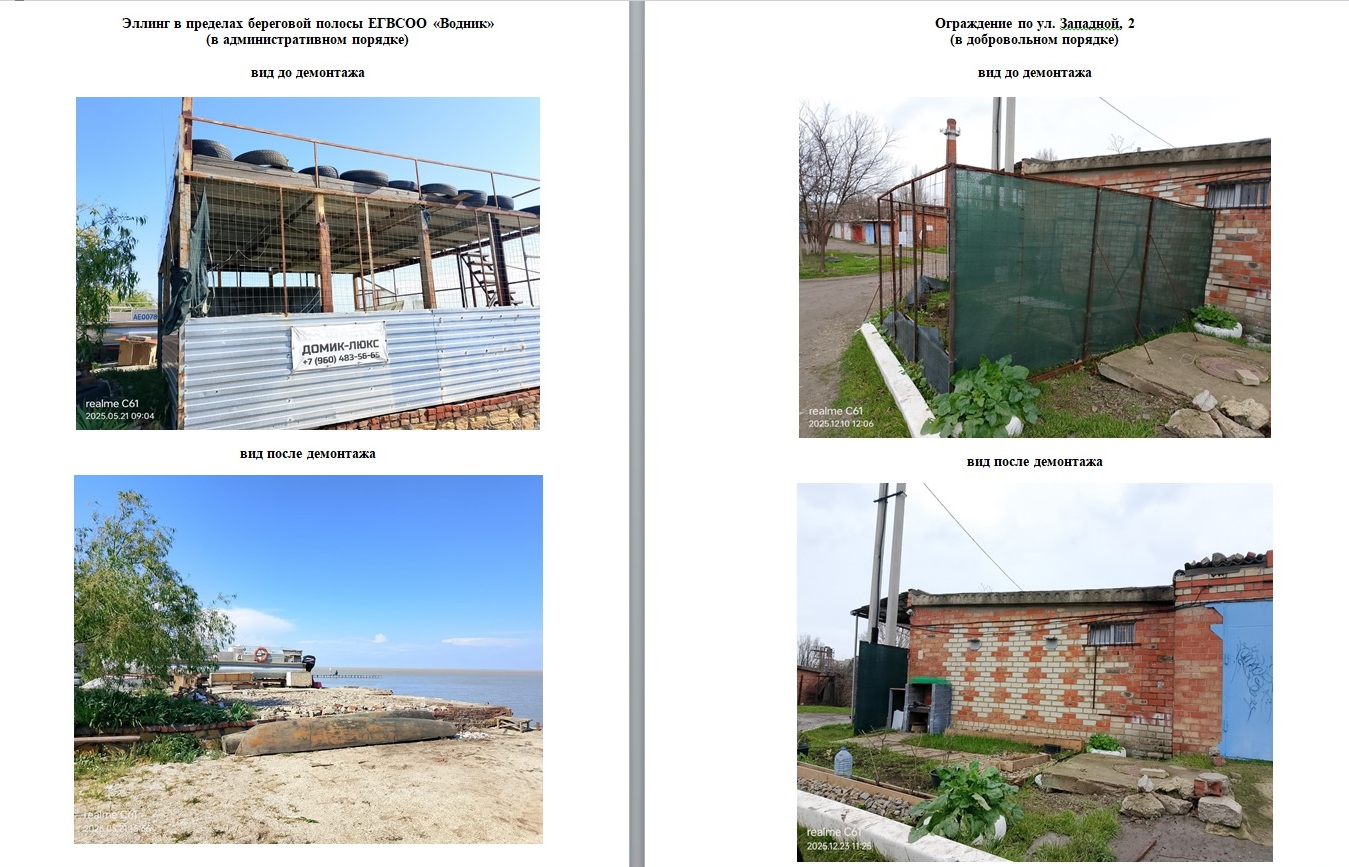 Так, Администрацией в 2025 году в целях освобождения территории Ейского городского поселения Ейского района от самовольно установленных объектов, проведен ряд мероприятий, в результате которых демонтировано 27 некапитальных строений, размещенных в нарушение действующего законодательства, в том числе: