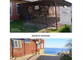 2 объекта в административном порядке (по решению комиссии по демонтажу самовольно установленных некапитальных строений и сооружений), расположенных в пределах береговой полосы водного объекта Ейского лимана, граничащей с территорией ЕГВСОО «Водник» по улице Рабочей, 2Б в городе Ейске;