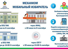 Стартовал приём заявлений о включении в список избирателей по месту нахождения (механизм «Мобильный избиратель») на выборах Губернатора Краснодарского края