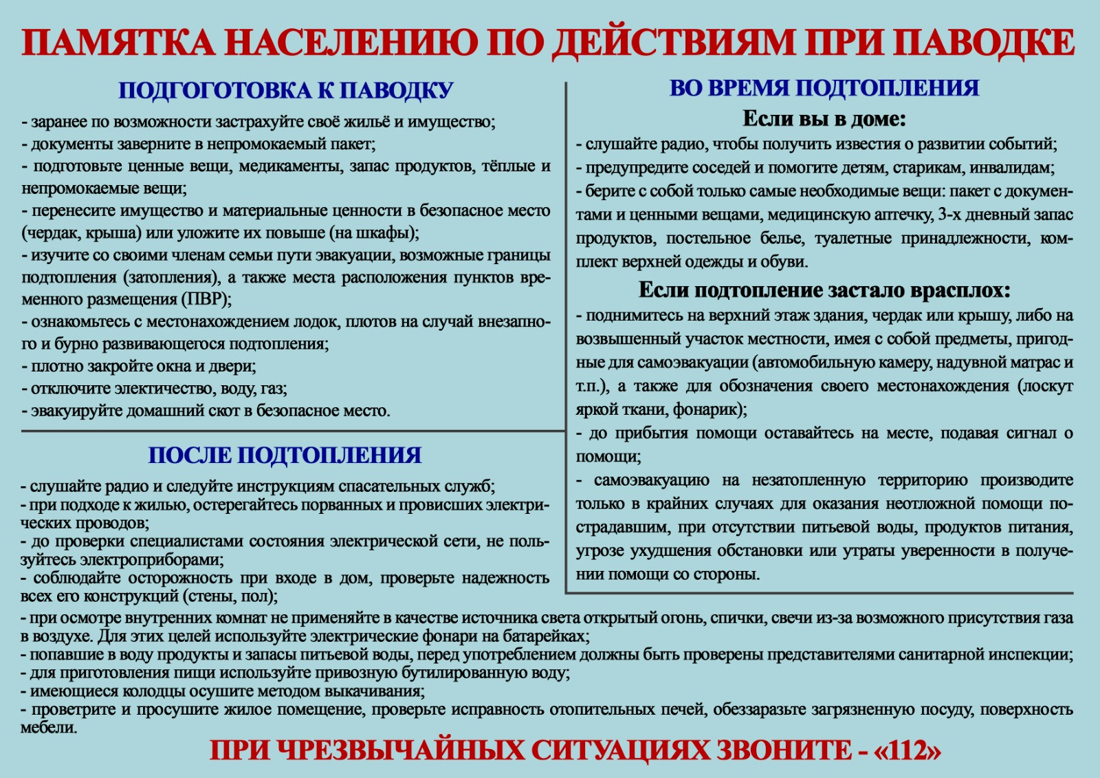Правила поведения населения в паводковый период