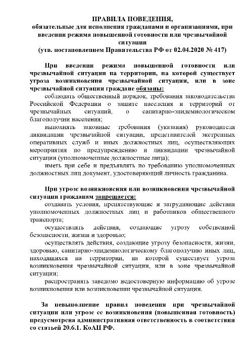 23.11.2021 Правила поведения, обязательные для исполнения гражданами и организациями при введении режима повышенной готовности или чрезвычайной ситуации Скачать