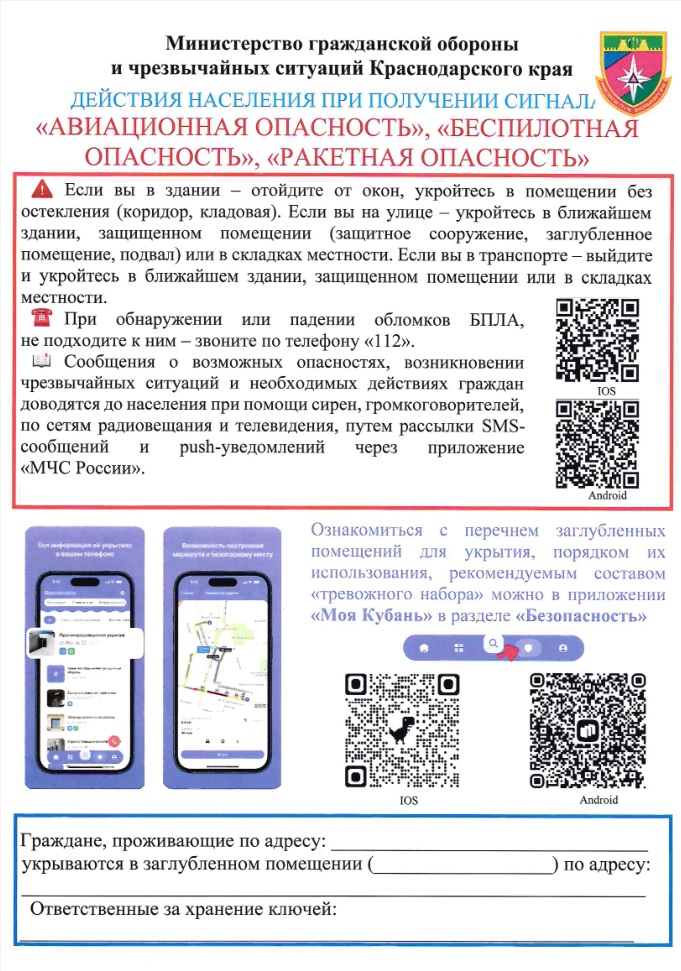25.02.2026   Действия населения при получении сигнала "Авиационная опасность", "Беспилотная опасность", "Ракетная опасность"      Скачать