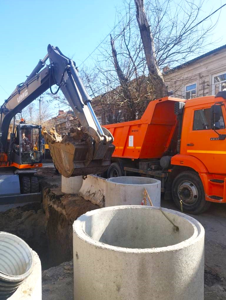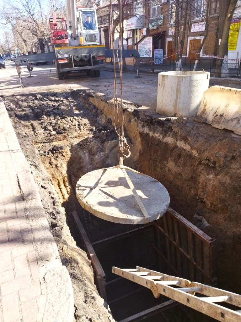 «В ходе длительной эксплуатации, под влиянием влаги и температурных колебаний, железобетонные кольца в колодце начали деформироваться и разрушаться, в результате чего образовался провал. Работы проводились в два этапа: выполнение земляных работ, удаление обломков железобетонных колец и восстановление инженерного узла, монтаж нового колодца, подключение абонентов. Работы осложнялись из-за того, что канализационные трубы располагаются на глубине почти 6 м от поверхности. К тому же, коллектор самотечный, поэтому необходимо было сохранить угол наклона», - рассказал Юрий Морочко, начальник производственного участка водоотведения РЭУ «Ейский групповой водопровод» ГУП КК «Кубаньводкомплекс».